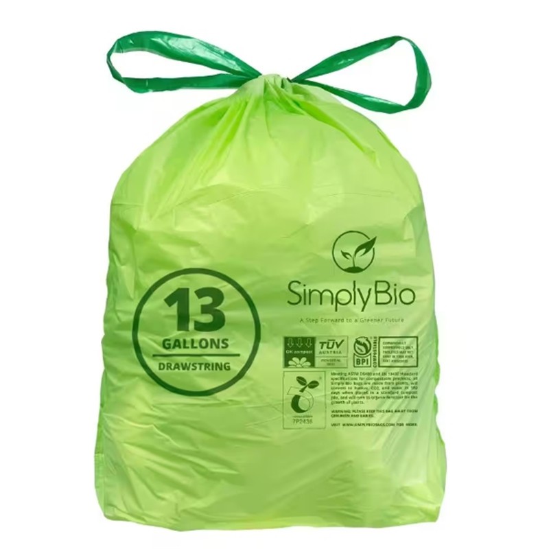 Our compostable drawstring garbage bags are engineered with premium plant-based materials to replace traditional plastic trash bags, solving the environmental pollution problem caused by non-degradable plastics. With a user-friendly drawstring closure, leak-proof and tear-resistant performance, and full compliance with international compostable standards, they are widely applicable to household, kitchen, office, hotel, restaurant and outdoor scenarios. We offer flexible OEM/ODM services to customize products according to your brand needs, helping you build a unique market position.